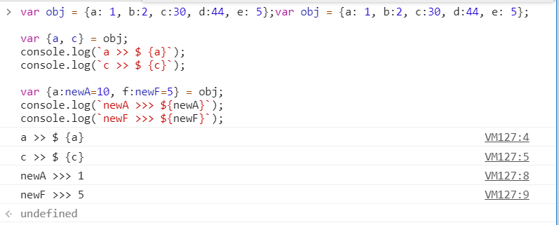 비구조화를 통해 속성 a와 c 속성을 가져와 변수에 할당