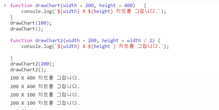 drawChar2는 width와 height을 기본 매개변수로 정의하는데, height의 기본값으로 앞의 매개변수인 width를 참조하여 작성함. width로 전달되는 값의 2로 나눈 값이 height의 기본값이 됨