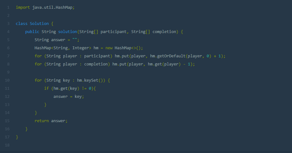 완주하지 못한 선수의 이름을 return 하도록 solution 함수를 작성해주세요.