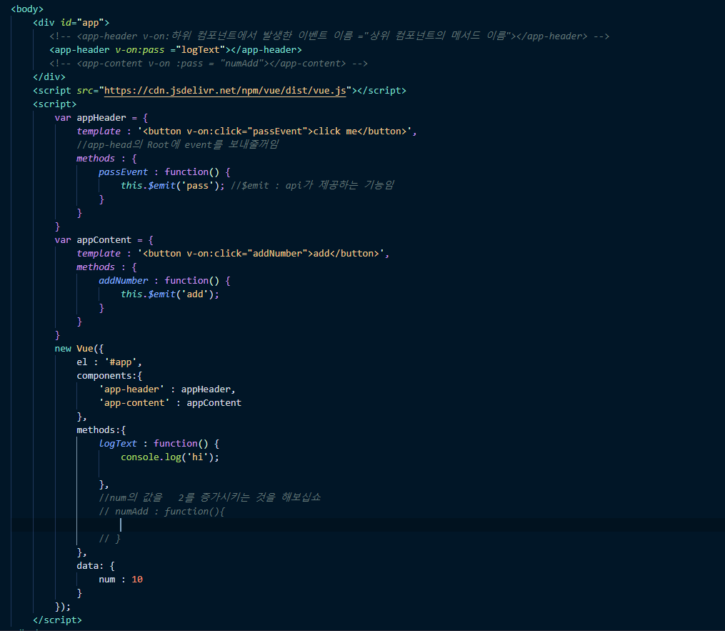 ------------------------------------기본컴포넌트 통신방법(기본_event emit 실습)-------------------------------------------