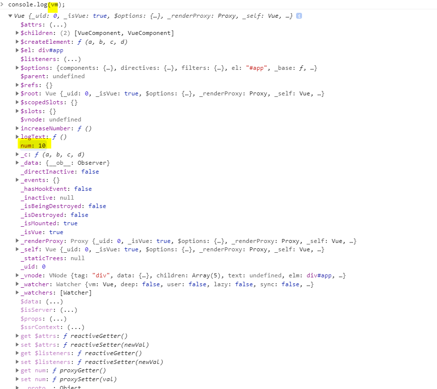 저장한 뒤 console창에 들어가서 찍어보면 Num이 나오는 것을 볼수 있습니다.