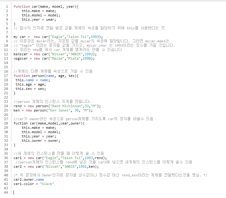 1. 생성자 함수를 작성함으로써 개체를 정의
