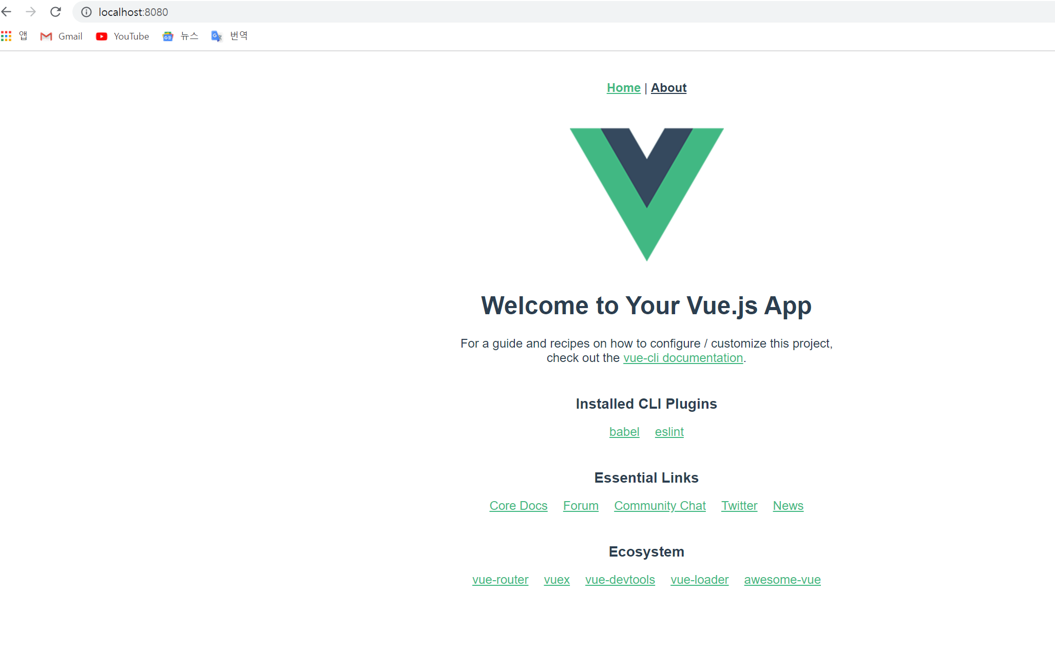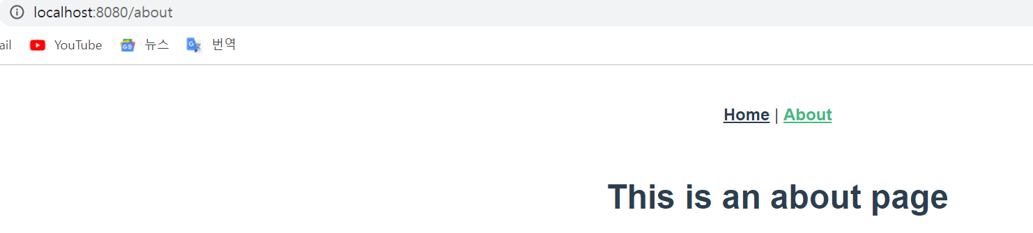 npm run serve 명령어로 서버를 실행시켜보겠음 about이 생김