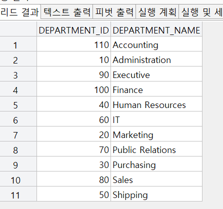 SELECT DEPARTMENT_ID,DEPARTMENT_NAME FROM DEPARTMENTS A