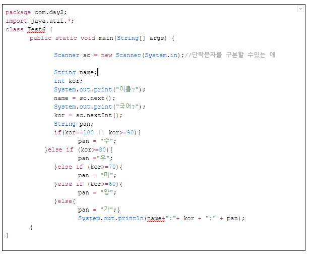 // System.in.read(); 1개의 문자만 읽어줄 수 있음 -> 뒤에 abcde 써도 a만 읽을 수 있음