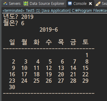 //배열 : 31,28,31,30,31,30,31,31,30,31,30,31