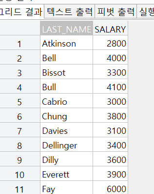 ④HAVING : 마지막으로 그룹함수값의 조건에 맞는 것만 발췌하여 출력.