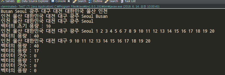 System.out.println("벡터의 초기 용량 : " + v.capacity());