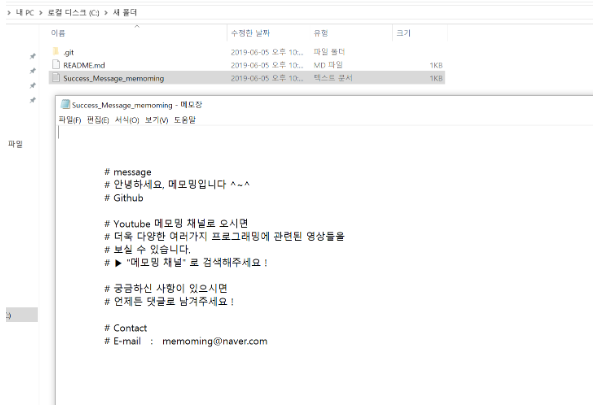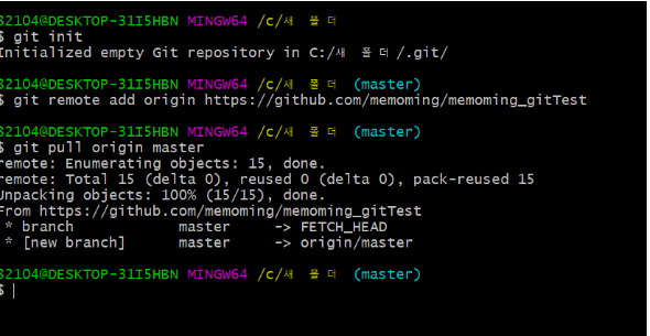 05. Mission : 다른 사람 git 가져오기 https://github.com/memoming/memoming_gitTest 또 다른 새폴더를 만든후 아까와 같이 해주세요 ![]() ![]()