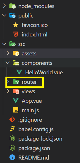 Vue Src 에 Router 폴더가 생성됨을 확인 할수 있습니다.